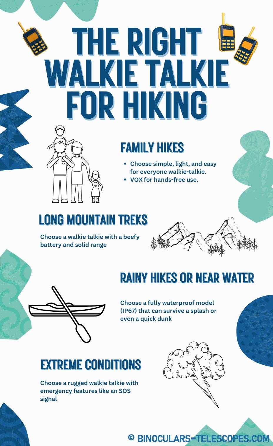 Not every hike is the same, and neither are walkie talkies! Whether you’re strolling with the family or tackling a rugged mountain trail, here’s how to pick the perfect one for your vibe: